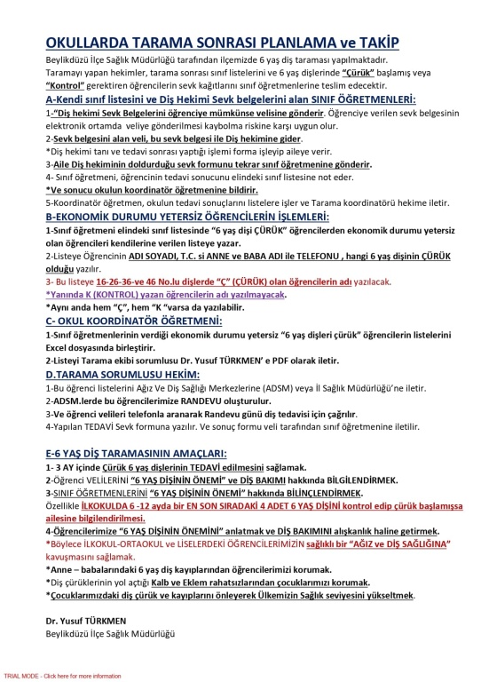 Hekimler tarafından hazırlanan doğru diş fırçalama teknikleri, yetişkinler için ağız ve diş eti sağlığına yönelik linkte paylaşılan belgeleri dikkatlice incelemenizi, kendinizin ve öğrencilerimizin ağız ve diş sağlığına dikkat etmenizi önemle tavsiye ediyoruz.