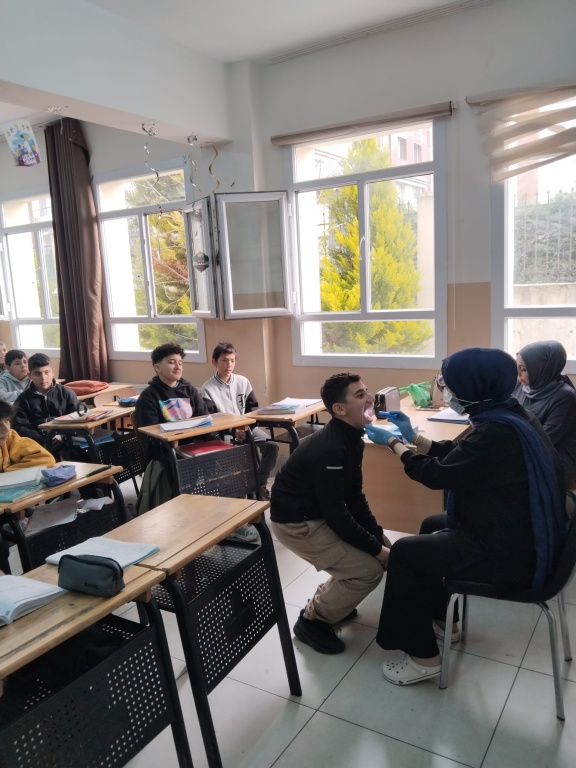 Beylikdüzü Sağlık Müdürlüğünden Diş Hekimleri bugün okulumuzda tüm öğrencilerimize diş taraması yaptı. Hekimlerimiz birçok öğrencinin dişinde çürük başlangıcı olduğunu, acil olarak önlem alınması gerektiğini belirttiler.